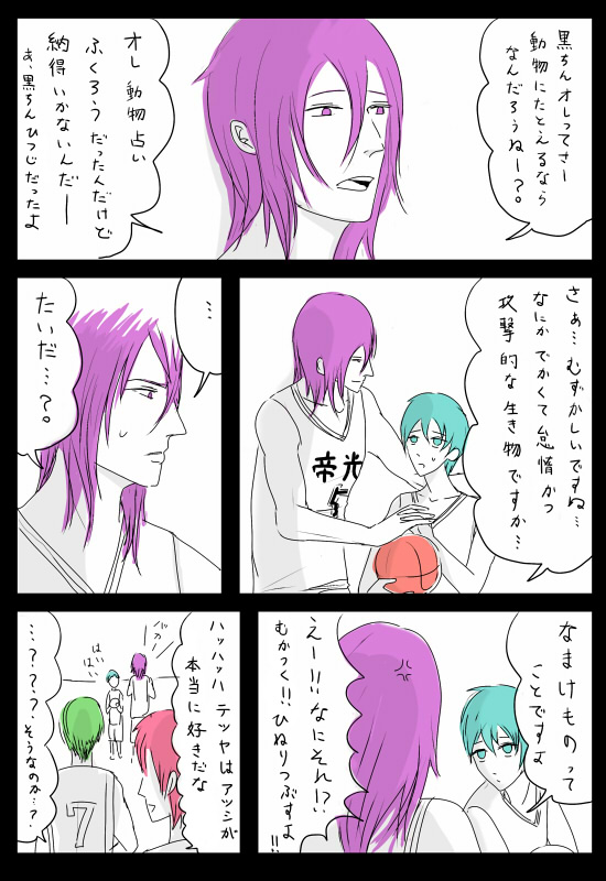 画像は「紫原くんと対等に喧嘩するのは黒くんだけだといいなぁ~」という妄想がつまった漫画です。動物占いって今の若い子もやるんでしょうか…?